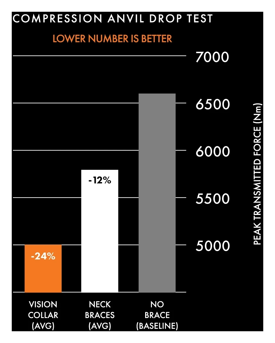 The Atlas Vision Neck Collar is a complete re-imagining of the neck protection category. By only being built up over the shoulders, the Atlas Vision Neck Collar aims to reduce compression forces by removing the traditional front and rear ‘shelves’ of a neck brace. Range of motion is increased by up to 66%, weight is reduced by 45% (vs Atlas Air), and the fit of the product creates a substantially wider audience for the product.