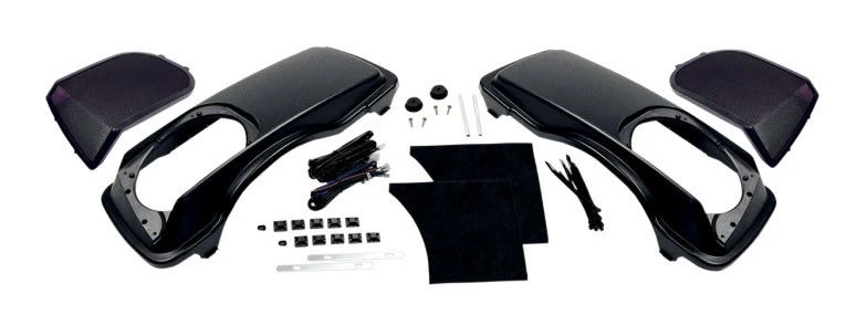 - Kit includes high impact ABS replacement saddlebag lids, lid tethers, grilles, striker plates, grommets, wire harness and required hardware