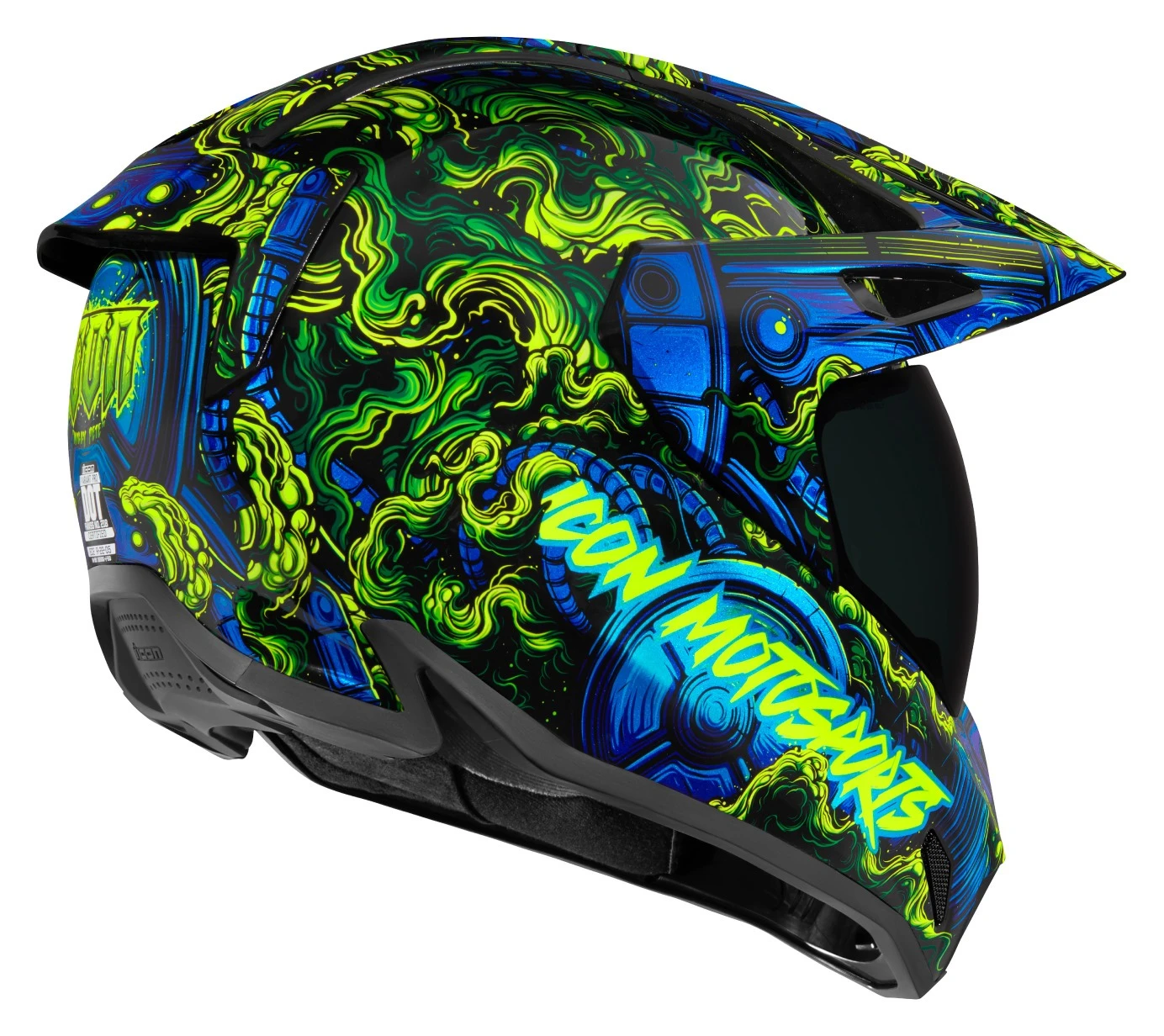 The Icon Variant Pro Helmet is an all-terrain terror that can hunt on the urban landscapes or prowl off the beaten path. Its composite shell is lightweight and stiff. A sculpted neckroll interfaces with your jacket so you can lean forward into a tuck without binding. A modular liner wicks sweat away so you can focus on choosing your line or the SUV that’s about to drift into your lane. The off-road inspired peak is wind tunnel tested for stability at speed. The Icon Variant Pro Helmet is ready for any adventure be it in the concrete jungle, logging roads or other mind altering journeys.