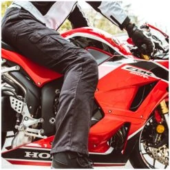 Soft finished pre-washed denim makes up the exterior with 220gsm aramid lining providing extra reinforcement at the knees, hips and seat. Triple stitched seams help keep the pant together in a tumble and stave off wear and tear. Reinforced belt loops hold up to season after season of use. A connection loop lets you connect your jacket and jeans to keep everything in place. Oversized slant hand warmer pockets make it easy to carry your gear. Reinforced flat headless rivets keep your pockets from busting without busting your paint job. Cargo pockets have an expansion fold so they let you store a good amount of gear. Hook and loop closures make sure everything stays put. Knee armor pockets hold CE rated armor which can be removed from the exterior of the pant so you can easily change from ready to ride to destination configuration. Hip armor is not included, but hip armor pockets make it easy to upgrade the impact protection.