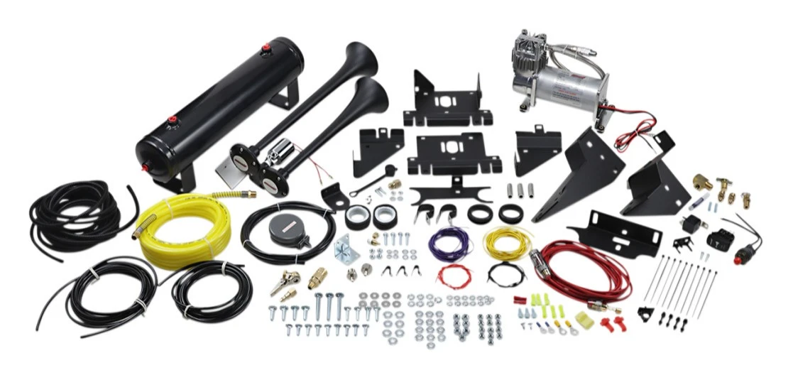 - Dual air horns, 16-3/4″ and 14-1/2″