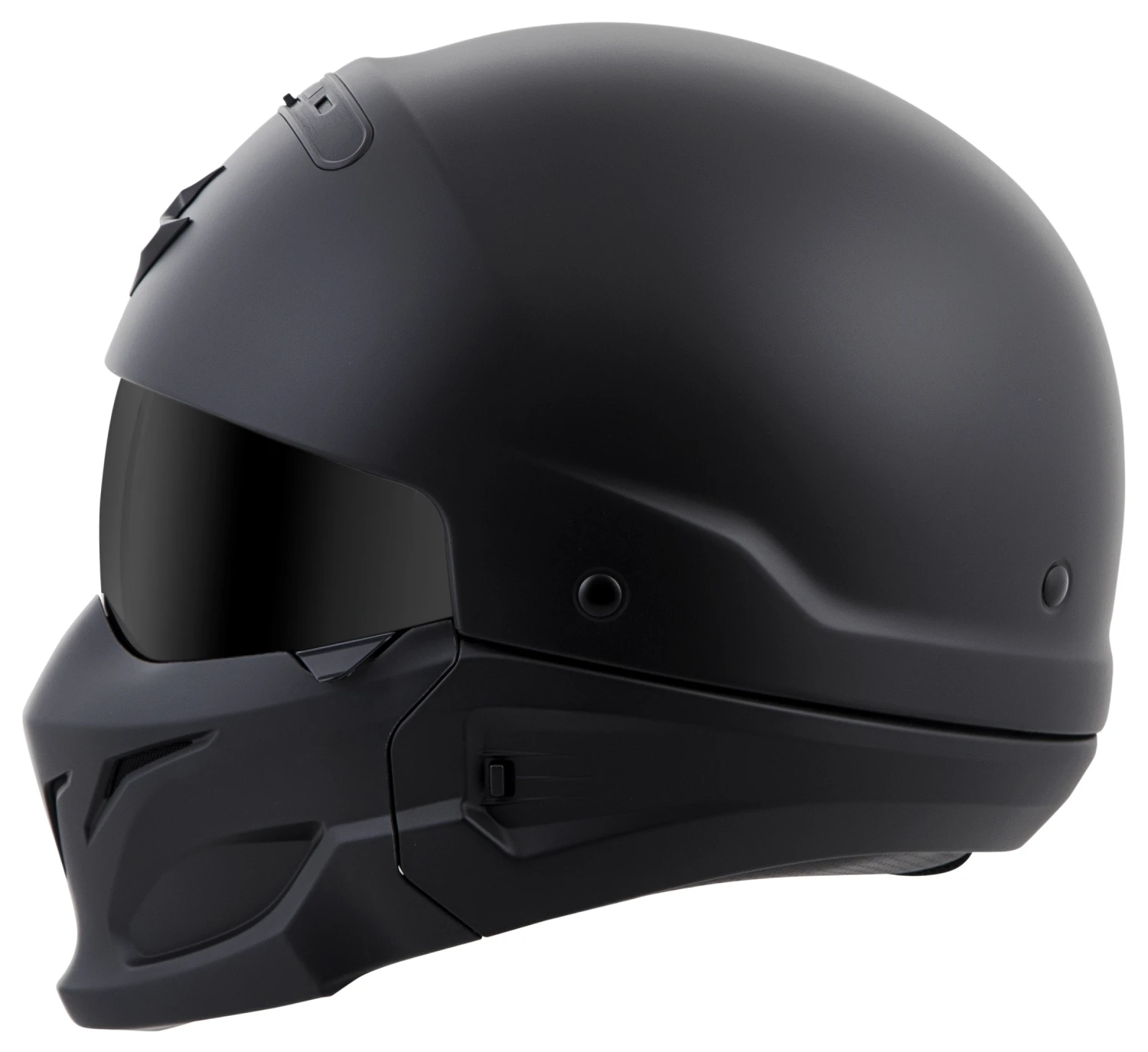 Scorpion adds a whole lot of “but wait, there’s more” to the classic half shell with the Scorpion Covert Helmet. They start off strong with a tune-able ventilation system. Next they mix in a no-frills drop down sun visor system. One pull on a tab lowers the shades then pushing the same tab retracts them; it couldn’t be easier. Snapping in a rear bottom sleeve transforms your lid into a 3/4 helmet and helps to muffle some of the cries from your lives-saving exhaust. Despite the extra coverage, Scorpion’s Kwikwick liner keeps your head in the game by channeling heat and humidity up to the ventilation ducts to be piped out the back. You’ll be cool as a cucumber. But wait, there’s more. Attaching the front mask shields your pretty face from bugs, and you-name-it debris as you’re blasting down the interstate. If you’re one who frequently needs to transition from being seen to only heard, the Scorpion Covert is there for missions ranging from the twisties to the impossible.