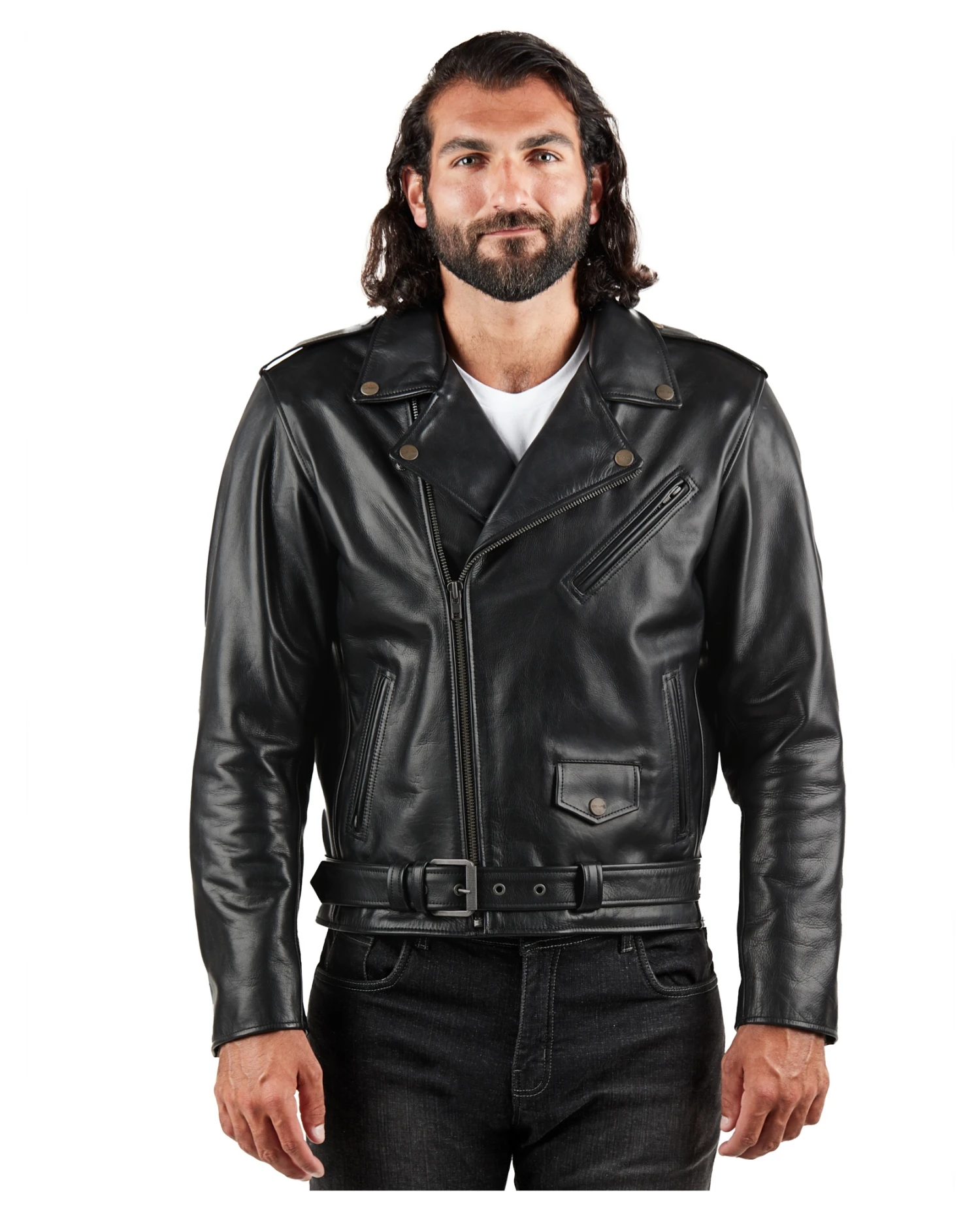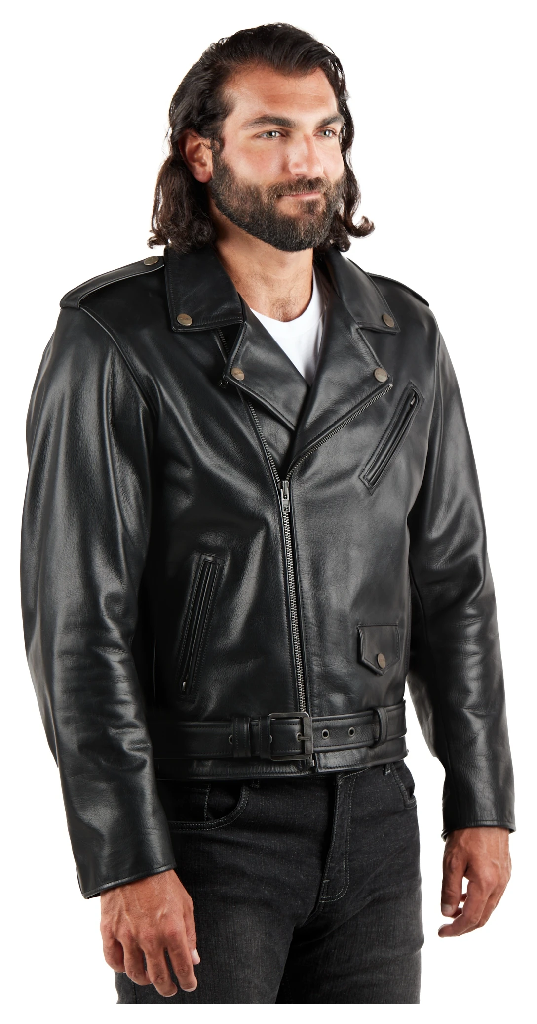 - 1.3mm – 1.4mm aniline cowhide leather jacket with shoulder gussets